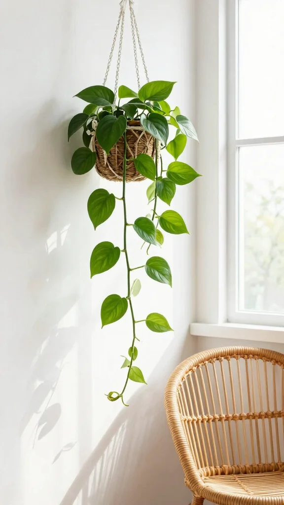 Pothos are perfect for adding a touch of greenery to your home with their beautiful trailing vines and heart-shaped leaves. These adaptable plants thrive in various light conditions, although they prefer bright, indirect sunlight. Their versatility makes them a favorite among indoor gardeners.
