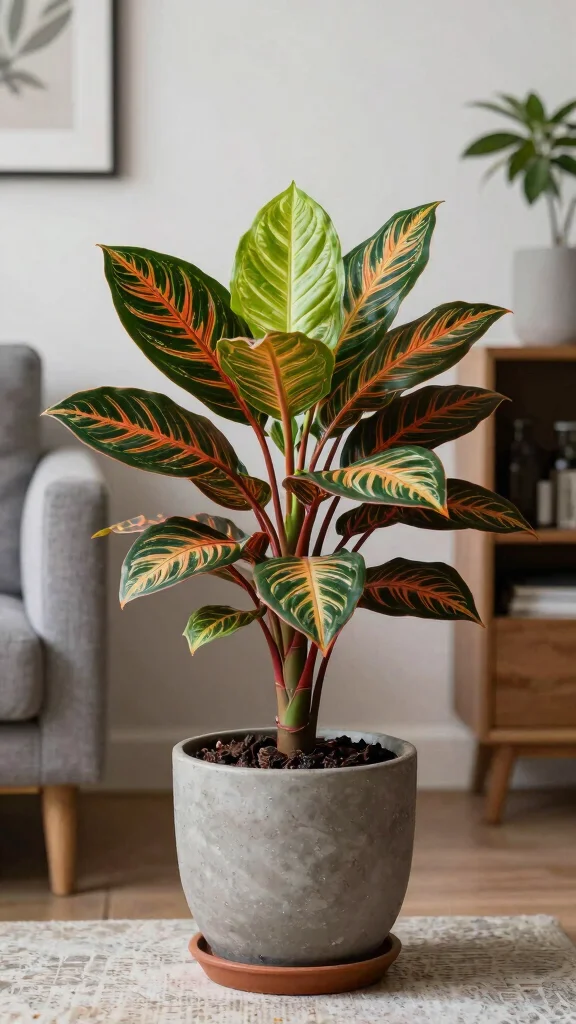 To care for your Chinese Evergreen, water it when the top layer of soil feels dry, and avoid direct sunlight to prevent leaf burn. A decorative pot that showcases its colorful leaves can make a bold statement in your home.