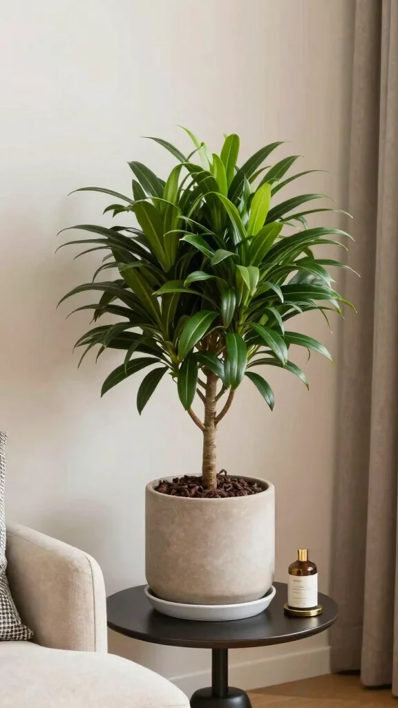 For a polished look, choose a modern planter that matches your existing furniture. Consider adding decorative items around the plant to create an engaging vignette that reflects your style.