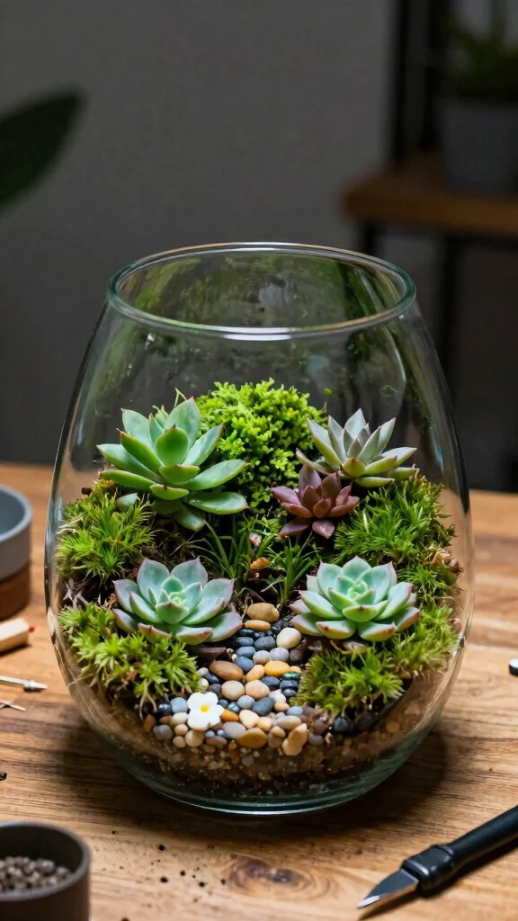 Creating your own terrarium is a delightful and creative way to showcase plants in your decor! These miniature gardens can feature a variety of plants, stones, and decorative elements, allowing you to personalize your display. Imagine a beautifully layered glass container filled with lush greenery and charming embellishments, serving as a captivating focal point in any room.