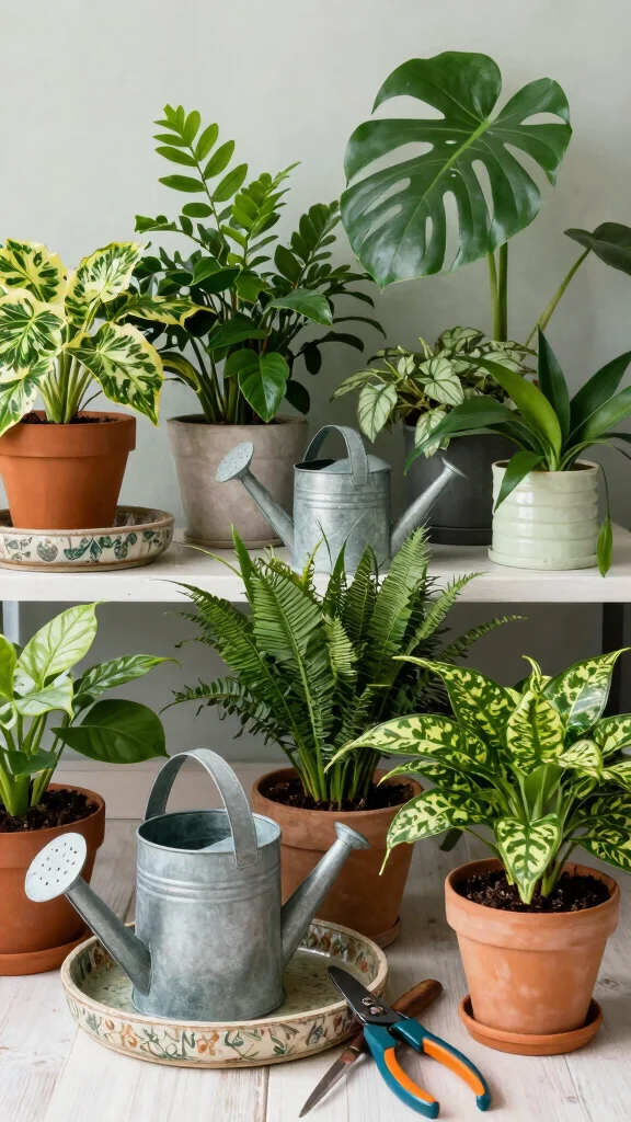 This method not only celebrates your dedication to plant care but also enhances your decor. The combination of plants and care tools creates a lively and inviting atmosphere that reflects your unique style.