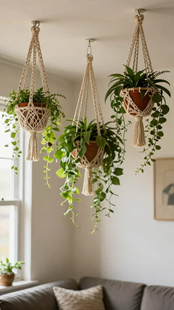 This design choice adds character and warmth to your space. The interplay of textures from the macramé and the lush greenery can make your home feel inviting and vibrant.