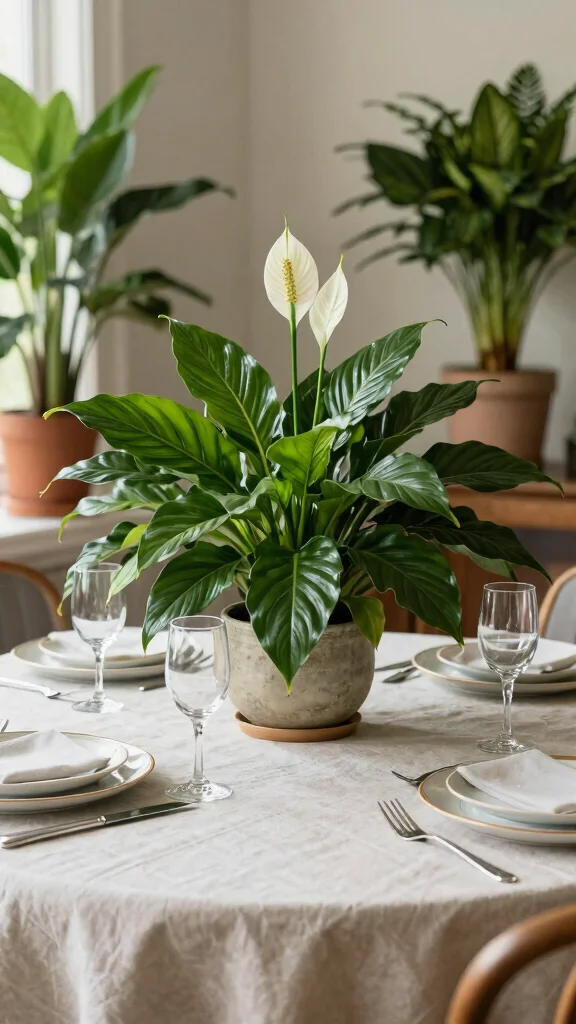 Transform your dining or coffee table into a botanical haven by using plants as stunning centerpieces! Select a large statement plant like a peace lily or monstera as the focal point, and surround it with smaller, colorful plants to create an inviting and nurturing atmosphere. Picture a beautifully arranged table that draws guests in with its lively greenery.