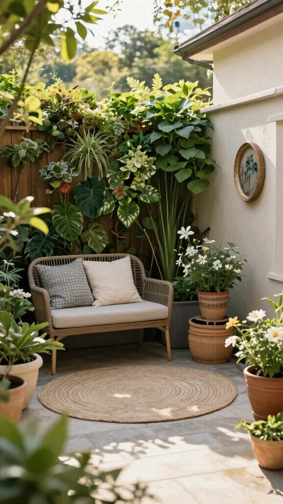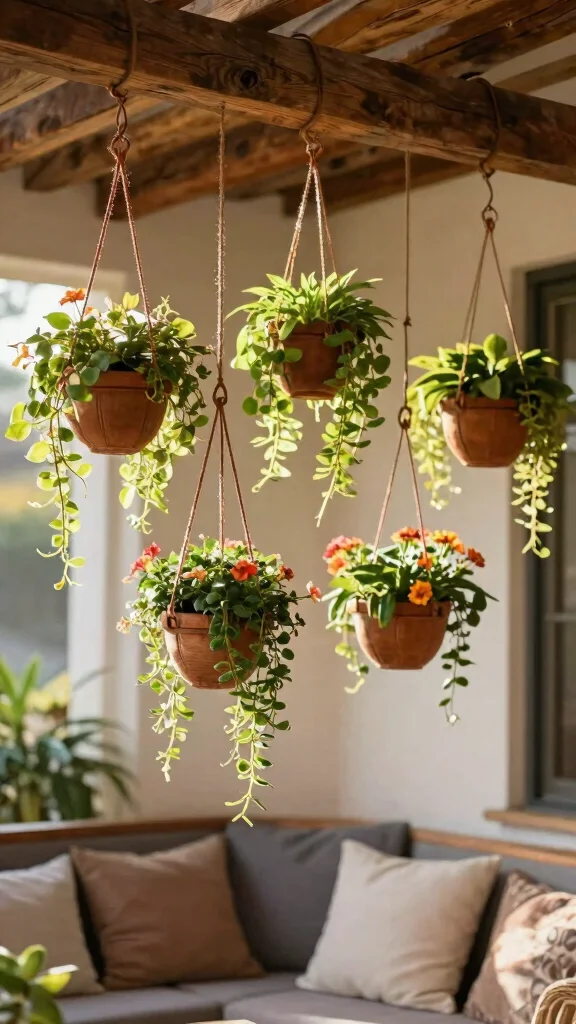 Use hanging planters to enhance vertical space, allowing for additional plants and making the area feel lush and inviting.