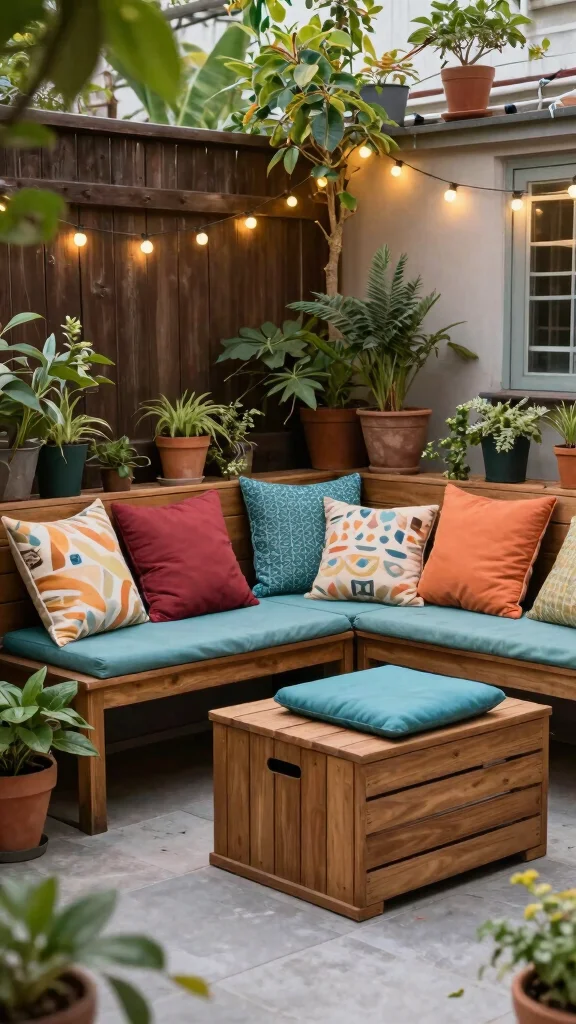 Multi-Functional SeatingWood, weather-resistant materialsAdd outdoor cushions