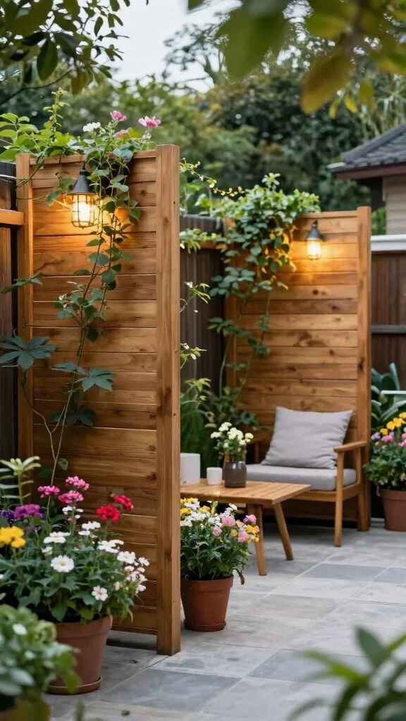 Use climbing plants on your screens for added greenery and beauty, creating a lush, inviting atmosphere.