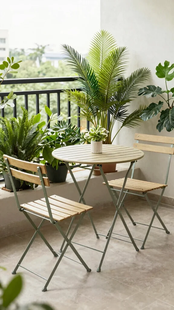 Collapsible furniture is crucial for making the most of your balcony space. Using foldable chairs and tables allows you to switch effortlessly between a gardening oasis and a social area. When not in use, the furniture can be easily stored away, leaving more room for greenery.