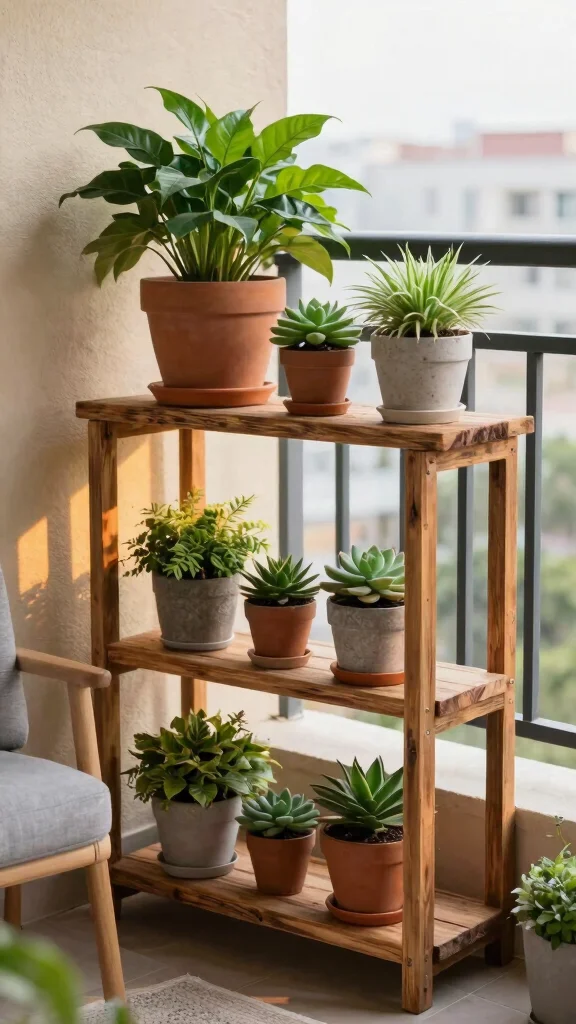 With tiered stands, not only do you enhance your balcony’s aesthetic, but you also simplify plant care, keeping everything organized and accessible.