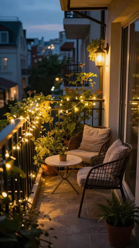 Outdoor fairy lights can dramatically transform the ambiance of your small balcony garden, creating a cozy retreat for evening relaxation. String these twinkling lights around your plants or along the railings to craft a magical atmosphere. They not only illuminate your space but also enhance the beauty of your greenery.