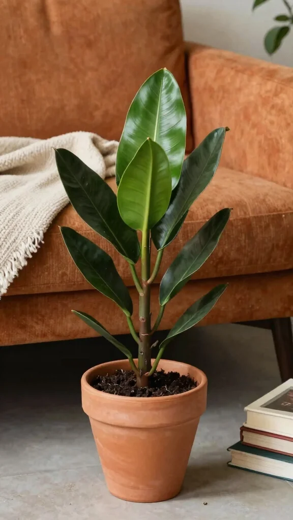 Rubber plants bring a touch of drama to your indoor space with their large, glossy leaves. They prefer bright, indirect sunlight but can adapt to lower light levels, making them versatile for apartment living. Not only do they add visual interest, but they are also low maintenance, needing only occasional watering to thrive.