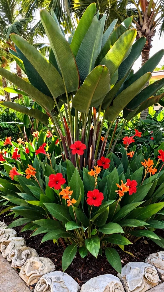 – Choose vibrant plants like Bird of Paradise and hibiscus