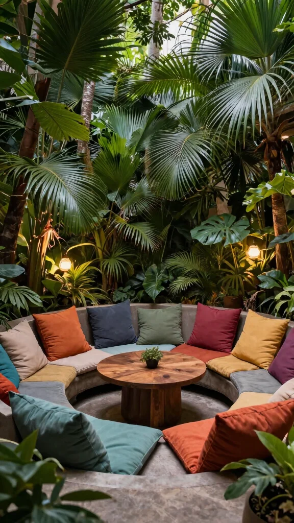 Relaxation Zones: Design cozy areas, like hammock nooks or sunken seating spaces, to encourage relaxation and enjoyment of your tropical oasis.