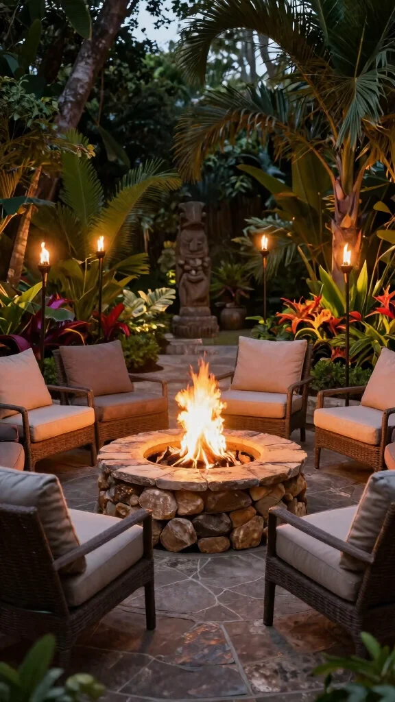 Your fire pit area not only serves as a functional space but also enhances the beauty of your tropical retreat.