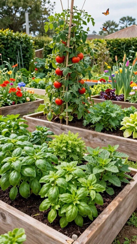 Arrange plants in tiers or rows to make the most of your space and sunlight exposure. Utilize trellises for vining plants like beans or tomatoes, adding a vertical element to your design.
