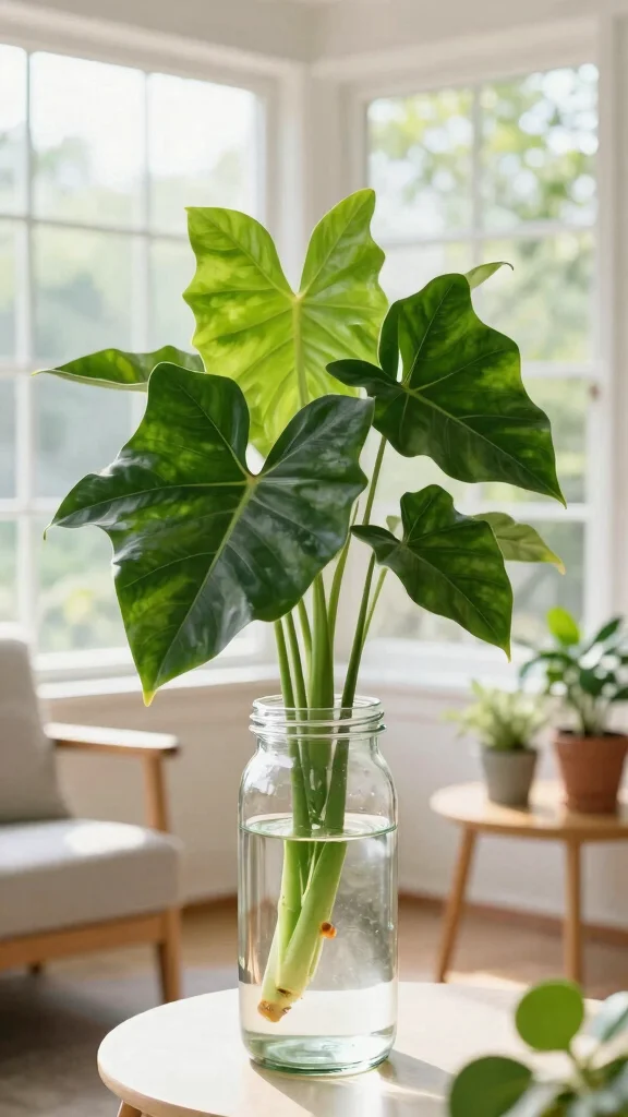 The Arrowhead Plant is loved for its uniquely shaped leaves and easy care requirements. This versatile plant thrives in water, making it perfect for anyone looking for a low-maintenance yet visually appealing indoor plant. Its dramatic foliage adds a lively touch to your home.To grow an Arrowhead Plant in water, place cuttings in a container filled with water, allowing the nodes to soak. Change the water weekly to keep it fresh, and provide bright, indirect light. You’ll be amazed at how quickly it grows, giving you more cuttings to propagate if desired!Pro tips: – Use a container with a wide opening for better air circulation. – Prune occasionally to encourage bushier growth. – Handle with care, as the sap can irritate the skin. The Arrowhead Plant is an excellent choice for adding flair and greenery to any space.