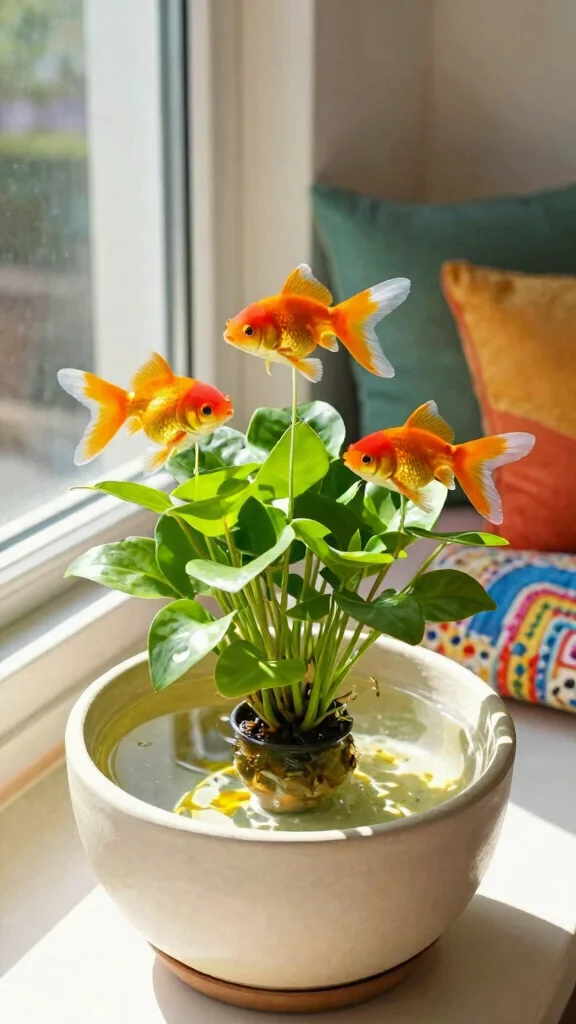 Goldfish Plants are adored for their bright, tubular flowers that resemble actual goldfish, making them a playful addition to your water garden. Their vibrant blooms can add a splash of color to any setting, complemented by lush green leaves providing a beautiful backdrop.To grow a Goldfish Plant in water, begin with a healthy cutting and place it in a container filled with water, ensuring the roots are submerged while the leaves stay above. This plant loves bright, indirect sunlight and needs regular watering to keep the roots healthy. Remember to change the water weekly to prevent stagnation.Care tips: – Use a liquid fertilizer every few weeks to boost blooming. – Prune dead flowers to encourage more blooms. – Keep an eye on humidity; it thrives in humid environments! With its unique appearance and vibrant blossoms, the Goldfish Plant adds a fun touch to your home.