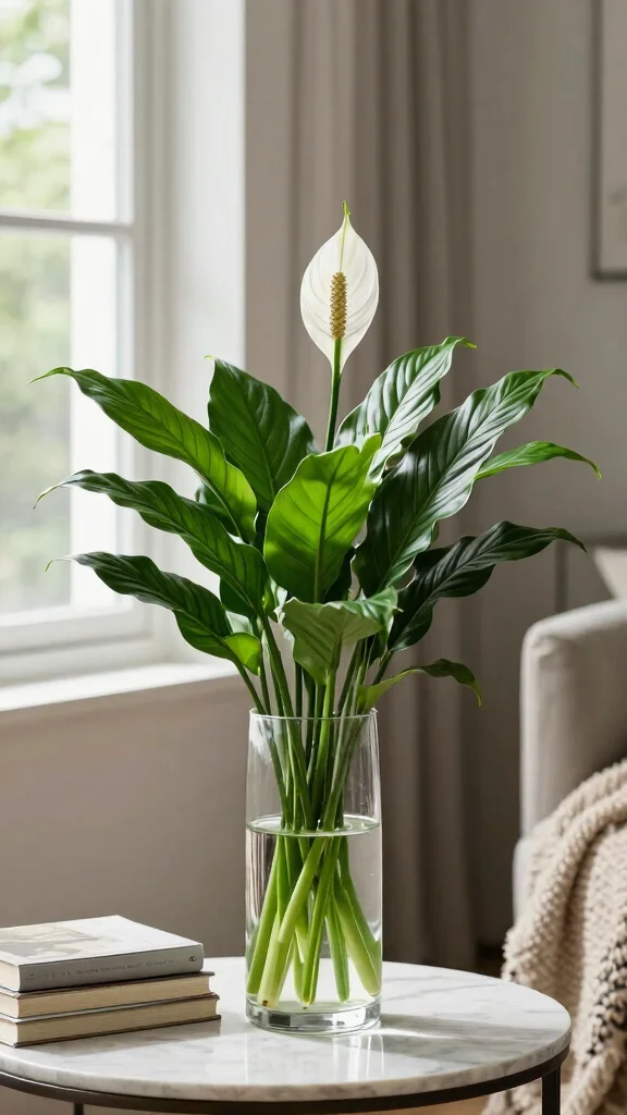 Searching for a plant that combines beauty with air-purifying benefits? Peace Lily is the answer! This elegant plant boasts lovely white blooms and glossy green leaves, making it a striking addition to any indoor garden. It thrives well in water, making it a perfect choice for those interested in aquatic plant care.To grow a Peace Lily in water, start with a healthy nursery plant and place the roots in a container filled with water. Ensure the water level covers the roots while keeping the leaves above. Change the water weekly and provide indirect sunlight for best results. You’ll soon be rewarded with gorgeous white flowers and lush foliage!Care suggestions: – Monitor the water level regularly and top it off when needed. – Yellow leaves may indicate too much sunlight, so adjust its position. – Use a diluted water-soluble fertilizer every few months for extra growth. With minimal effort, your Peace Lily can thrive, enhancing your living space with elegance and charm.