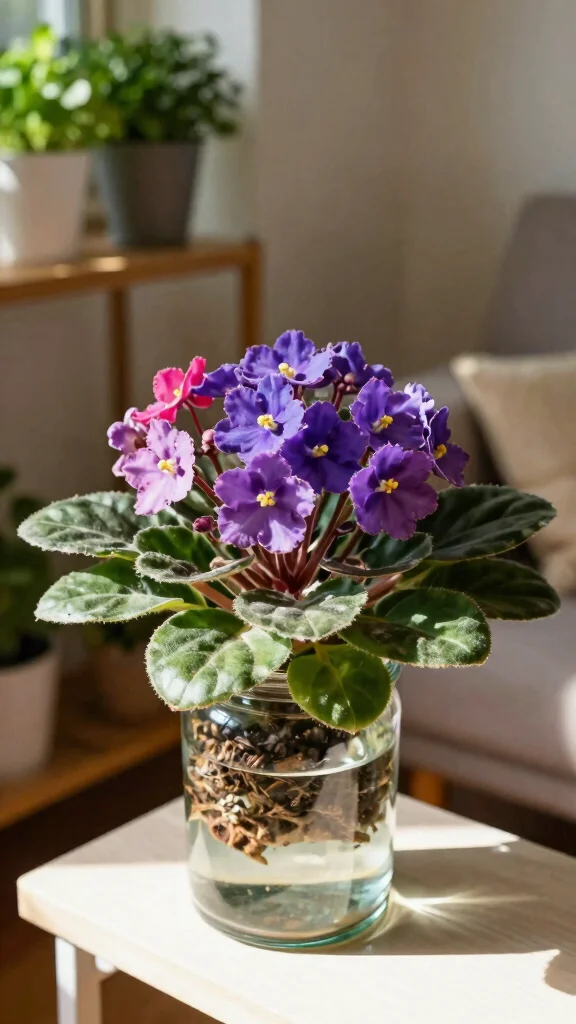 African Violets are treasured for their charming flowers that bloom all year round. These delightful plants can also thrive in water, making them a wonderful addition for indoor gardening enthusiasts. With vibrant colors ranging from deep purple to soft pink and white, they effortlessly brighten any space.To grow African Violets in water, start with a healthy leaf cutting placed in a container filled with water, ensuring the stem is submerged while keeping the leaf above the waterline. They thrive in bright, indirect light; just be sure to keep them out of direct sunlight. Regularly change the water to maintain freshness and encourage healthy growth.Tips for success: – Use distilled water to avoid mineral buildup. – Fertilize with diluted African Violet food every few weeks for blooming. – Prune dead flowers to promote new blooms. With proper care, African Violets can transform any room into a vibrant floral paradise.